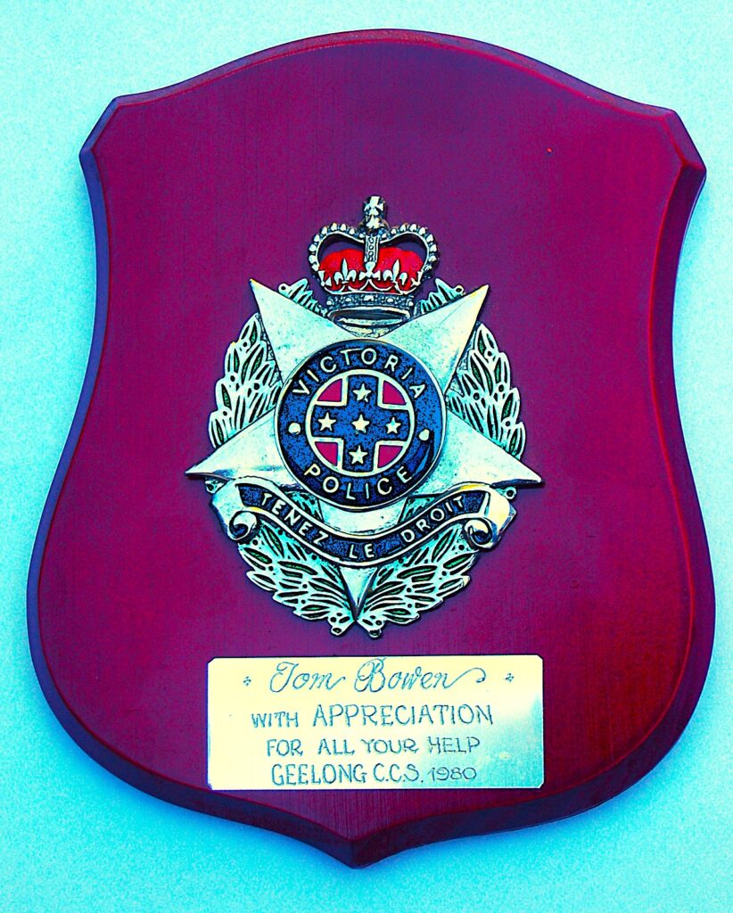 It’s nice that a little statue commemorating Tom Bowen was placed in the Geelong park near where he once worked. He was extremely generous with his skills and did a lot of good work in the community, especially with sporting clubs and disabled people. The fact that the plaque on the statue refers to ‘the six boys’ myth, which was built into the design is unfortunate, but it’s still nice that Tom’s community work was recognised in this way and those who went to the trouble of arranging it deserve credit (though a little more research might have resulted in a more accurate portrayal).
